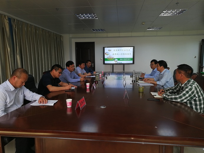 为进一步落实《市长办公会议纪要》(〔2020〕7号)精神,推动beat365在线平台官网何寨农林实习实训基地建设,5月24日下午,浉河区区委副书记谷光亚,双井办事处党工委书记涂延海、主任韩列贵、副主任万志强,何寨村村支书张得明一行来beat365在线平台官网进行基地问题协商。副校长赵聘、科学技术处处长史洪中和农林实习场场长胡汉升参加座谈会。座谈会由史洪中主持。