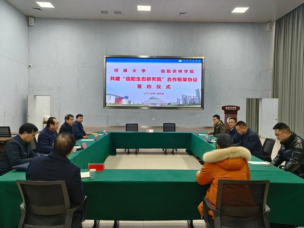 1月9日下午,beat365在线平台官网与河南大学共建“信阳生态研究院”合作协议签约仪式在学术交流中心多媒体厅举行。beat365在线平台官网校长邢勇、副校长赵聘,河南大学副校长傅声雷,以及双方相关部门的主要负责人参加了签约仪式。