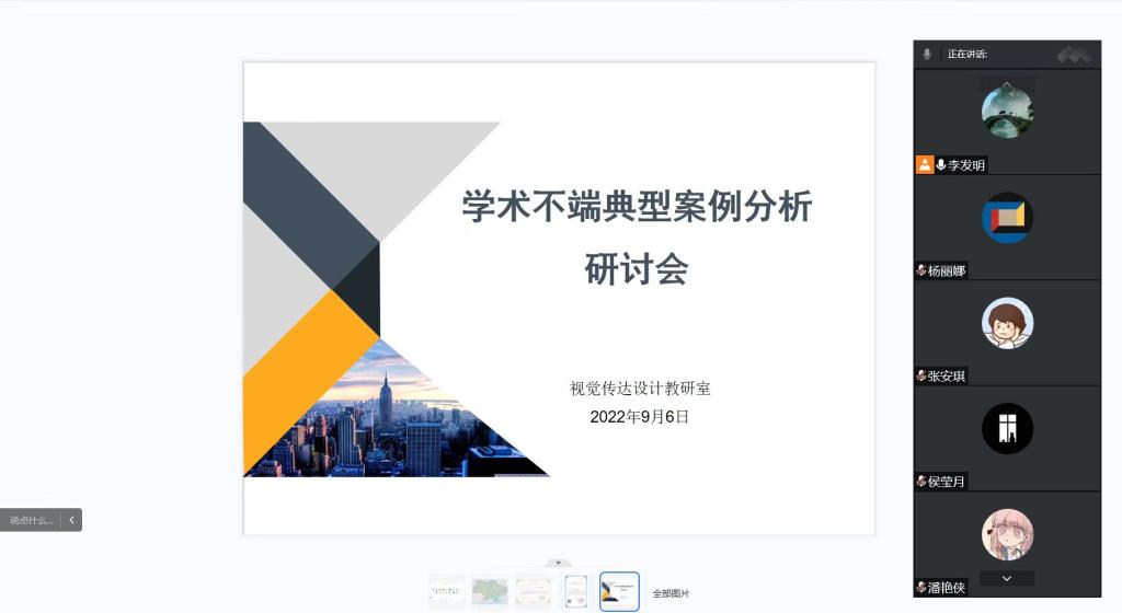 为进一步加强警示教育,引导我院教师树牢学术诚信意识、营造良好学术氛围,9月7日,规划与设计学院组织各教研室召开线上学术不端典型案例分析研讨会,学院领导班子成员及各教研室教师参加会议学习。