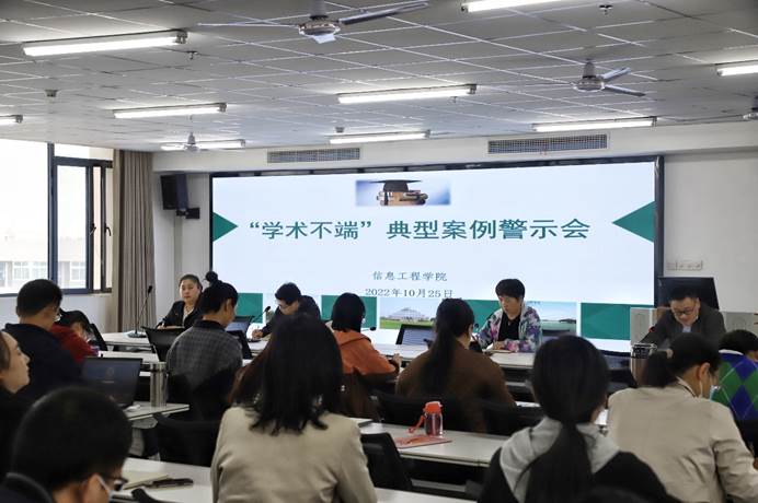为弘扬科学精神,营造良好的学术诚信氛围。10月25日下午,信息工程学院在双创618召开“学术不端”典型案例警示会。会议由副院长潘赟主持,信息工程学院全体教师参会。
