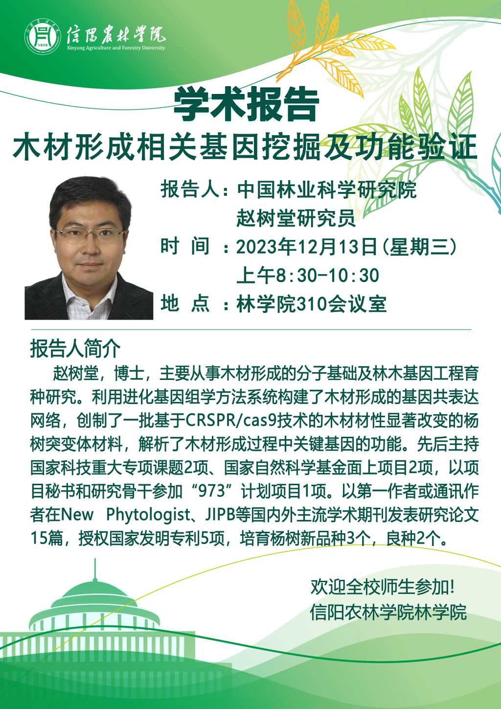 上一条:林学院“青山讲坛”系列学术报告---国家自然科学基金项目申报与组织管理