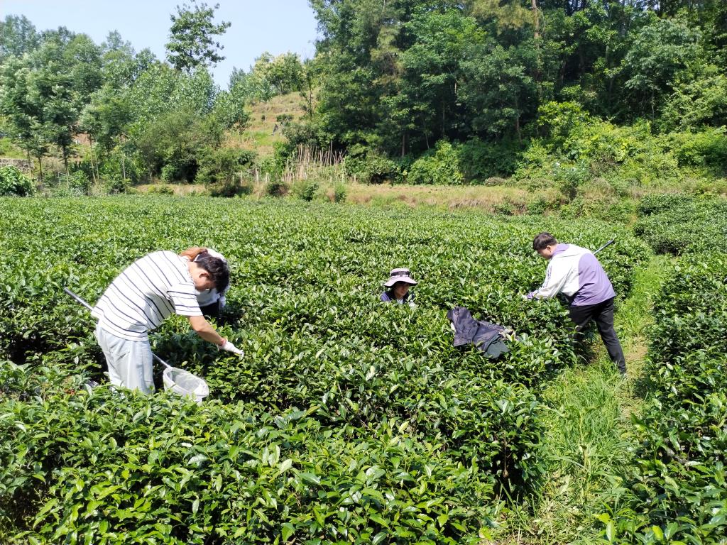 2023年6月1日,茶学院教师常亚丽携“茶重组”科研兴趣小组成员刘先净、孙宁波和李瑞升乘车前往信阳市浉河区陈家老塆茶园,调查当前茶园害虫的发生情况并捕捉了一部分害虫样品(茶学院 常亚丽)。