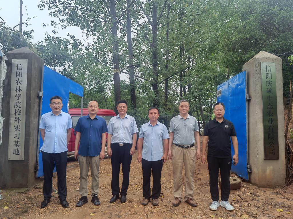 7月28日,beat365在线平台官网纪委书记李强、动物科技学院院长黄立、副院长邓凯伟、陈培荣、科研秘书曲哲会、动物医学教研室主任刘涛及农林实习场场长胡汉升一行七人赴浉河区东双河乡信阳庆硕生态农业有限公司开展校企合作。