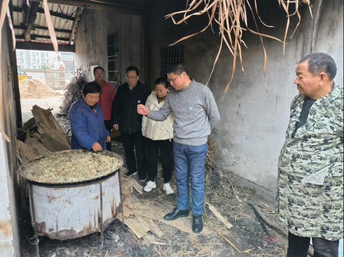 17日,科技特派员服务队一行人来到李集乡卜店村,与村委干部就近期乡村振兴建设中遇到需要解决的问题进行交流,随后了解该村池塘养殖的春季管理、水质调控等方面内容,同时了解该村小微规模养猪、养鸭情况。随后来到该村一养猪户养殖现场,发现养殖户把青叶蔬菜水煮后饲喂黑猪,专家指出青叶水煮之后会破坏维生素成分,建议直接投喂效果更好,另外向养殖户赠送了过硫酸氢钾消毒剂,提醒养殖户天气逐渐升温,要定期消毒猪圈,注意环境卫生。