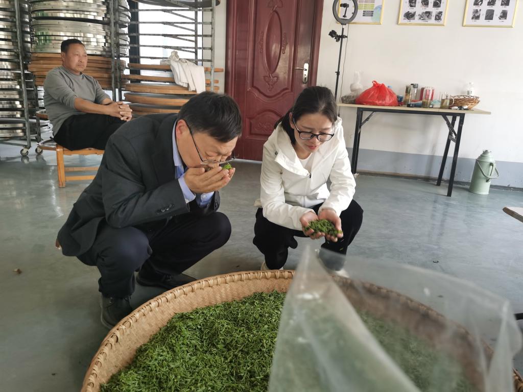 在宏济茶社参观加工车间,就自动化茶叶加工机械的生产使用进行交流沟通,并对现有茶样进行茶叶审评与检验,建议企业采用专业的茶叶感官审评方法,对茶叶品质做出客观评价,不断优化调整制茶技术,充分发挥车云山村生态环境好、海拔较高、茶叶天然品质好等资源优势。在浉河区余海群茶叶专业合作社的生产车间里,考察鲜叶采摘情况与实际生产加工情况,与企业负责人交流茶叶的具体销售情况;在信阳本山茶叶有限公司进行调研,详细了解近一周茶叶的产量变化以及今年茶叶零售价格的涨幅;最后,服务团在附近的鲜叶交易市场,与当地茶农散户交流,调研了茶鲜叶的价格和产量、销量情况。