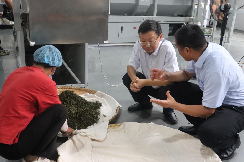 下午,郭桂义一行在县科协党组书记李世清、县科协一级主任科员曹汉家的陪同下考察调研了湖北半兵卫茶业有限公司的无性系良种茶园、碾茶车间和抹茶车间,并就茶园管理、茶农收入、抹茶生产量、茶树品种对抹茶品质的影响与企业负责人高峻峰进行了交流,郭桂义建议企业与高校可以互相协作,检测抹茶产品的参数,更好的提升产品品质;加强产品包装、产品商标等合理合规的使用,并就今后产学研合作进行了交流讨论。(撰稿:王晶晶 摄影:王晶晶)