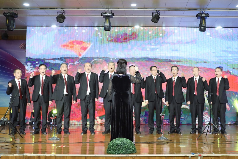 演出节目有大合唱、男女声小合唱、男女声独唱、舞蹈、模特表演、电吹管和奏、诗朗诵、太极扇等,内容精彩纷呈,场面欢快热烈,充分展现了beat365在线平台官网离退休职工老有所乐、健康向上的精神风貌。现场用“读懂中国”视频讲述了范宏伟、周本翔两位退休教授牢记立德树人初心使命、科技服务乡村振兴的感人事迹。大学生艺术团也通过歌曲、舞蹈表达了青年学生的尊老敬老之情。