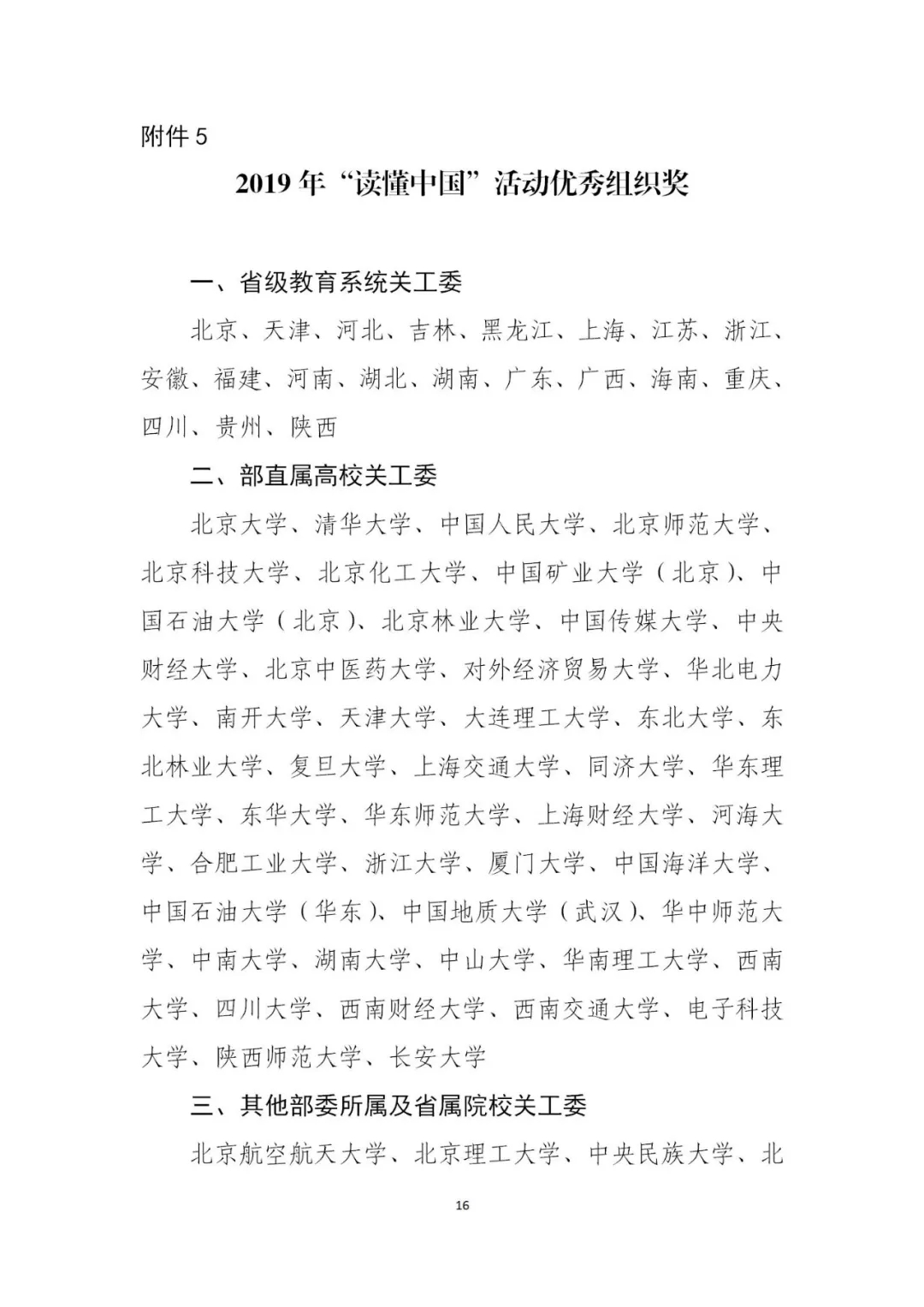 2019年教育部关工委在全国高校中开展了“读懂中国”活动,beat365在线平台官网认真组织,积极参与,因工作出色,被教育部关工委授予“优秀组织奖”,全省有11所高校获此殊荣。