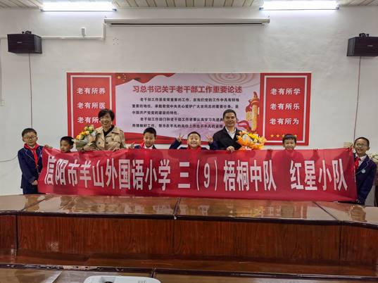 为喜迎二十大,欢度国庆与重阳,10月4日下午羊山外国语小学三(9)班梧桐中队红星小队来beat365在线平台官网开展“学习五老精神,做新时代好少年”主题实践活动。
