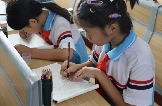 国庆节即将到来之际,服务团成员陈佳雯与淮滨小学的小朋友们共同探索美术的乐趣。在教学过程中,每一次的讲解和答疑,都锻炼了服务团老师的语言组织能力和逻辑思维能力,与学生一起成长,一起进步,这是最宝贵的收获。“我深刻体会到教育的意义所在——不仅仅是知识的传授,更是心灵的触碰与成长的陪伴。”陈佳雯动情地说。