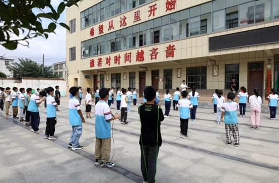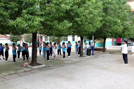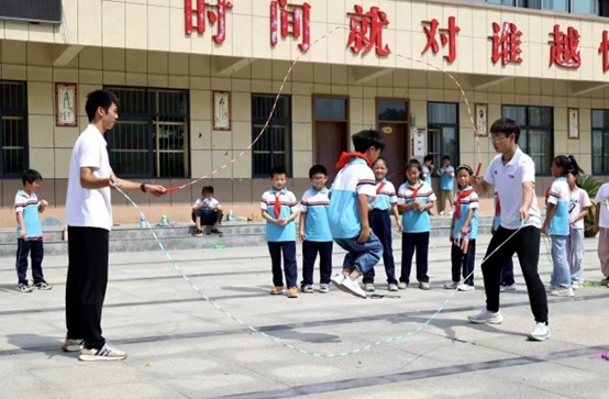 文艺支教服务团对新里镇中心学校三四五年级学生进行跳绳、舞蹈、绘画课程培训,为学生们上了一堂丰富精彩的课程。