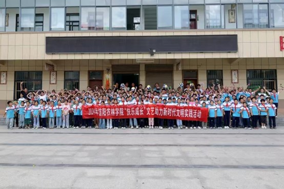 “快乐成长”文艺助力新时代文明实践行动是2024年“强基工程”文艺助力基层精神文明建设行动的重点工作,本次系列服务活动是学校贯彻落实高校与新时代文明实践中心结对开展志愿服务工作的具体行动,也是贯彻全国教育大会精神,投身建设教育强国战略的具体行动。本次活动增强了学校与淮滨县结对帮扶单位的沟通交流,展现出学校师生良好的精神面貌和专业素养,对推动乡村学校多元文化发展、丰富学生的精神文化生活,提升高校师生服务社会、服务基层的实践能力都有积极意义。