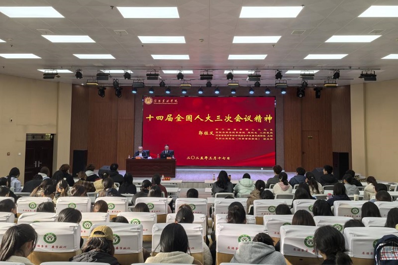 3月17日下午,郭桂义代表受邀在信阳师范学院外国语学院“五育大讲堂”上宣讲。学院师生200余人聆听了报告,会议指出,报告主题鲜明、内容丰富,重点突出、生动精彩,对学院师生准确把握好、深入贯彻好全国两会精神具有重要的指导作用。与会师生纷纷表示,将以实际行动贯彻落实全国两会精神,推动全国两会关于教育、科技、人才的重要部署在高校立德树人实践中落实见效,为实现学校高水平师范大学建设贡献智慧和力量。
