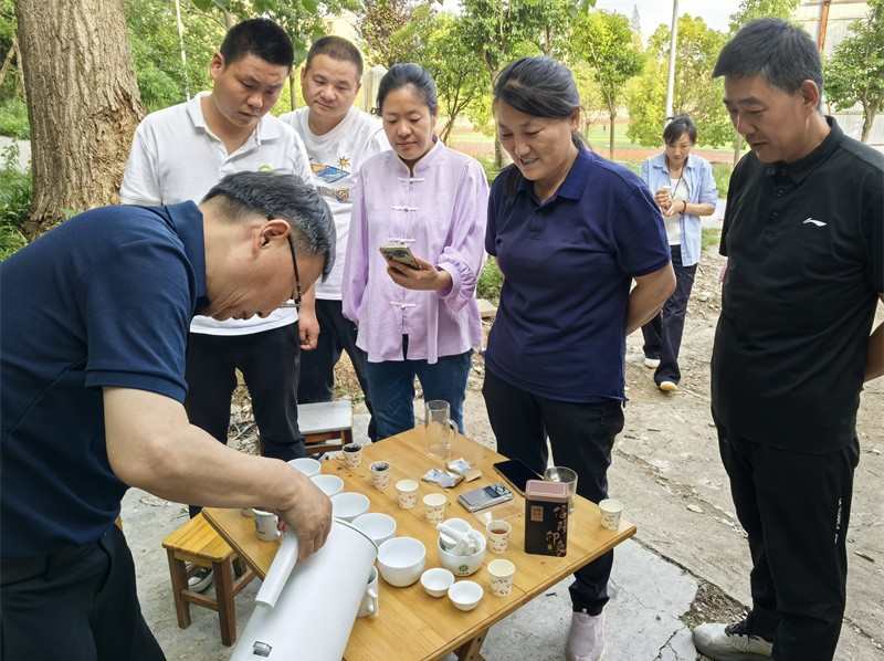 更让茶农振奋的是,他将专业审评台“搬”到现场,讲完理论立刻实操。5位茶叶品质较优的茶农,当场领到印着“茶叶感官审评专用”的审评杯和计时器——这份“科技礼包”成了大家争相传阅的宝贝。