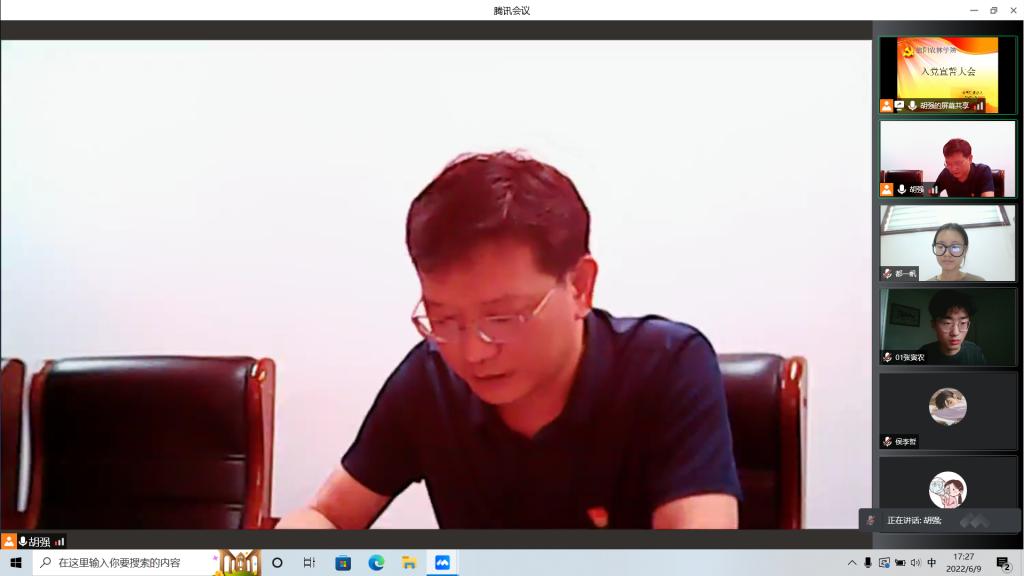 2022年6月9日,林学院党总支新党员入党宣誓仪式在林学院D312会议室举行,此次入党宣誓仪式采取线上+线下方式进行。学院党总支副书记肖亮、专职组织员张毕阳、各学生党支部书记、支委、新老党员参加了宣誓仪式。仪式由肖亮同志主持。