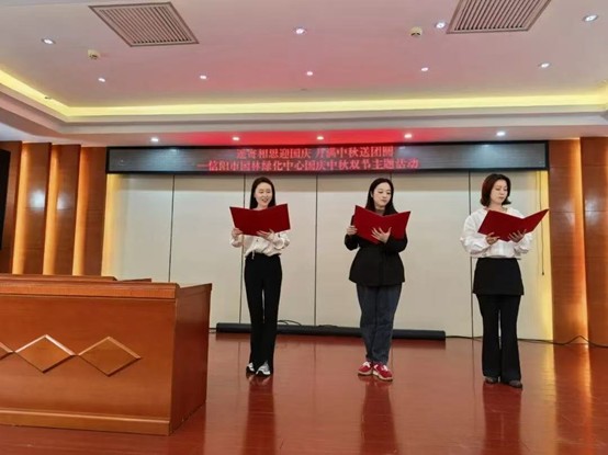 颂祖国峥嵘岁月,扬华夏爱国豪情。园林绿化事务中心和工区社区党支部的教职工们精神饱满,逐一朗诵了《我的祖国》、《沁园春·国庆》、《月满人间 情满中秋》等篇章,用声音描绘山河壮丽,以朗诵抒发爱国赤诚。