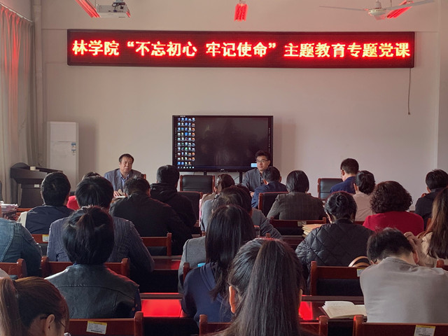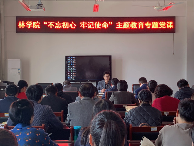 10月15日下午,在科技楼1C501教室,副校长赵一鹏为林学院全体党员干部及优秀学生党员代表上了一堂生动的党课,本次党课的主题是:基层党建如何抓,基层党建抓什么。