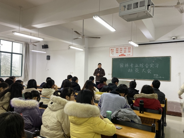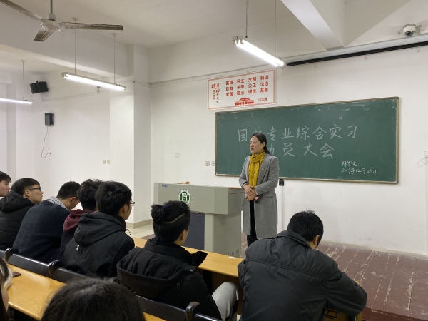 2019年12月23日,召开了“园林专业综合实习动员大会”,林学院副院长王辉,园林教研室教师乔良、董艳、付满意参加了此次会议。会上王院长对此次综合实习的必要性和重要性做了特别强调,并对本次实习的流程和内容做了细致部署,要求大家要充分结合大学四年所学园林专业知识,按时认真完成好此次综合实习任务。