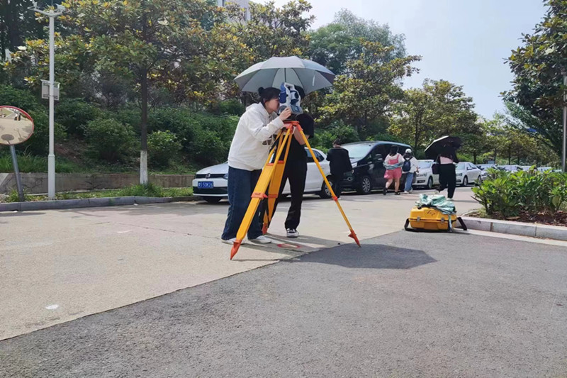 5月22-26日,园林专业21级1、2、3班108个学生开展了为期一周的《园林测量学》课程期末综合实训,课程组孙耀清、尹娟、马桂花等三位老师全面规划综合实训安排,从场地踏查、控制点布设、碎部点施测等教学知识重难点入手,带领同学们由浅入深进行课程实训活动,同学们发扬不怕困难、敢于挑战、团队协作等精神风貌,圆满完成预定的1:500地形图测绘实训任务,最终达到课程教学任务和人才培养目标要求。。(撰稿/林学院 马桂花 摄影/林学院 马桂花)