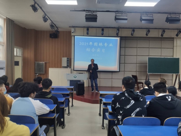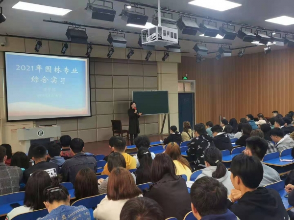 为了组织好本次实习,林学院园林教研室从2月底就开始了实习的准备工作,多次组织召开实习专门会议,从实习地点的选择与落实,到学生的食宿、交通的安排;从学生实习前的动员,到实习环节的质量保证都作了周密详细的计划和安排。3月15日上午,林学院在一教E102专门组织实习师生召开实习动员大会,党总支书记赵师成、副院长王辉分别为学生做了专业思想教育和实习动员,就实习内容和实习生活等内容进行了安排部署。此外,为保障园林专业综合实习的顺利开展,园林教研室还专门制定了《园林专业综合实习计划》、《园林专业综合实习方案》及相应的安全和应急管理措施,确保了此次实习稳步、安全、有序的完成。
