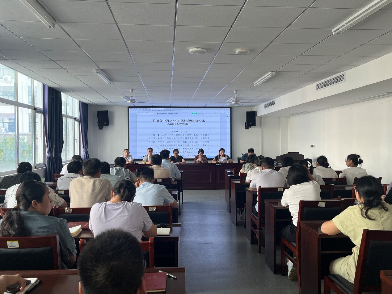为了进一步弘扬科学道德,加强学风建设,以及引导我院教师树牢学术诚实守信意识,营造严谨规范的科研氛围。2024年9月10日下午,林学院全体教师参加了在实验楼D310会议室召开的学术道德行为规范及学术不端行为宣讲会,会议由林学院副院长李文杨主持。