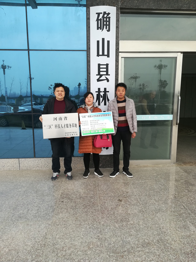 2018年3月26日林学院教师刘道纯、黄玉杰两位老师组成的科技服务团队,赴确山县林业技术推广站开展“三区”人才科技服务。