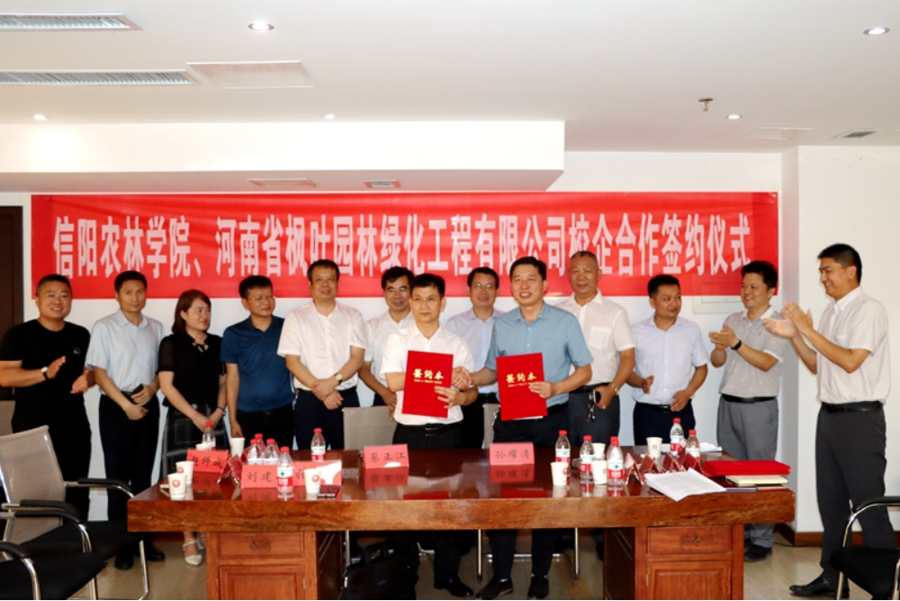 最后,林学院院长孙耀清和蔡正江代表校企双方签订合作框架协议,并共同为校企共建“信阳市特色乡土树种培育工程技术研究中心”揭牌。(撰稿/林学院 肖亮 摄影/林学院 肖亮)