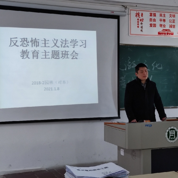 按照省公安厅、教育厅及学校的工作安排,教育学生树立安全意识,进一步提高学生反恐意识,加强我院师生关于《中华人民共和国境外非政府组织境内活动管理法》的法律知识学习。1月8日,林学院各班级组织开展了“反恐防暴法制安全教育及学习《中华人民共和国境外非政府组织境内活动管理法》”主题班会活动。