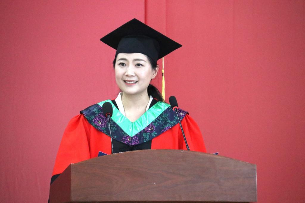 随后,毕业生代表户佳燕、在校生代表薛文雅、教师代表赵晶晶老师依次登台发言;
