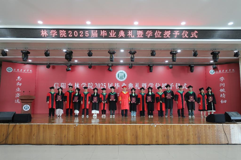 beat365在线平台官网学位评定委员会副主席张光辉教授、林学院学位评定分委员会委员共同为获得学士学位的2025届毕业生颁发学位证书、拨苏正冠并合影留念。