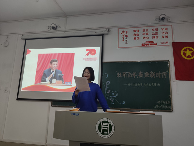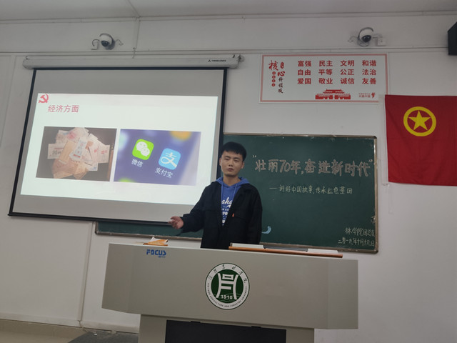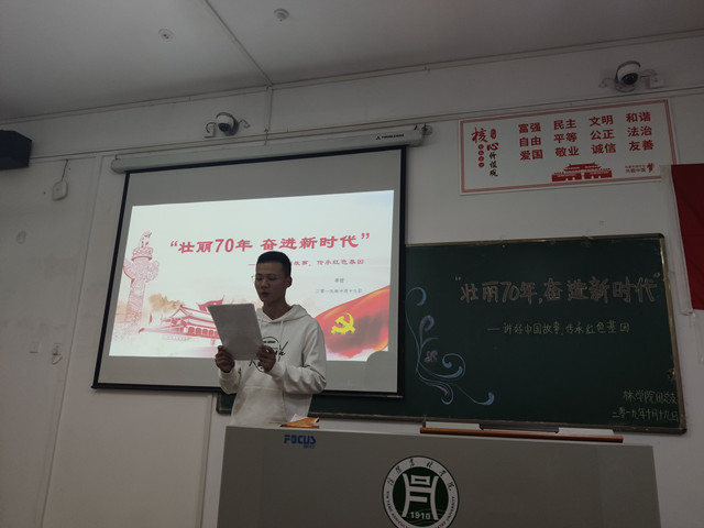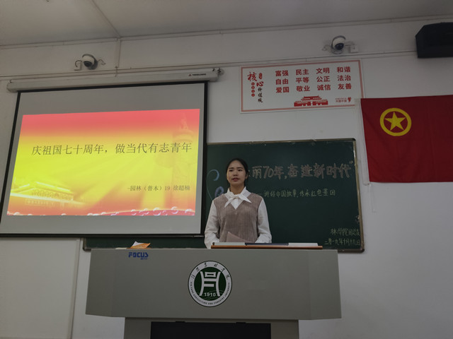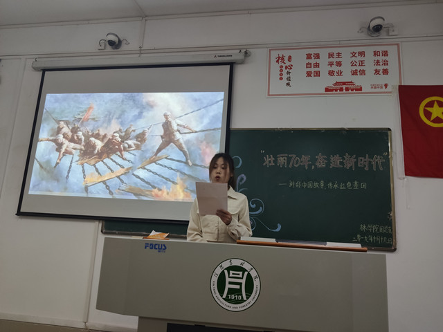 70年砥砺奋进、70载壮丽诗篇。10月19日下午,在林学院党总支的组织领导下,林学院学生第一党支部、学生第二党支部、林学院团总支在二教116室共同举办了“壮丽七十年,奋进新时代——讲好中国故事,传承红色基因”主题演讲比赛。