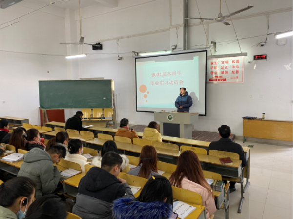 首先,教学秘书张广波强调了毕业实习的重要性以及必要性。院党总支副书记肖亮紧接着从严格要求自己、提高实习质量,严格遵守学校和实习单位纪律,提高人生和财产安全防范意识3个方面进行了安排。