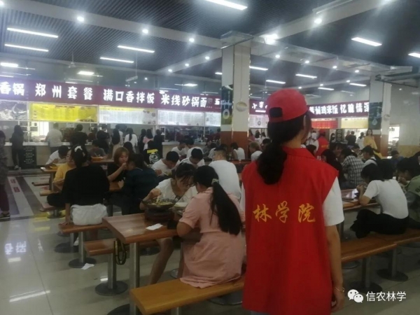 在一餐厅内,志愿者们面对各种不文明现象和浪费现象及时进行了制止和委婉的提示。活动期间,志愿者们认真维持就餐秩序,宣传文明就餐理念,倡导光盘行动,同时提醒同学们用餐后要自觉将餐具送回回收处。活动最后,志愿者们还主动帮助餐厅工作人员清理餐桌垃圾,协助打扫餐厅卫生,志愿者们的表现得到了大家的一致好评。