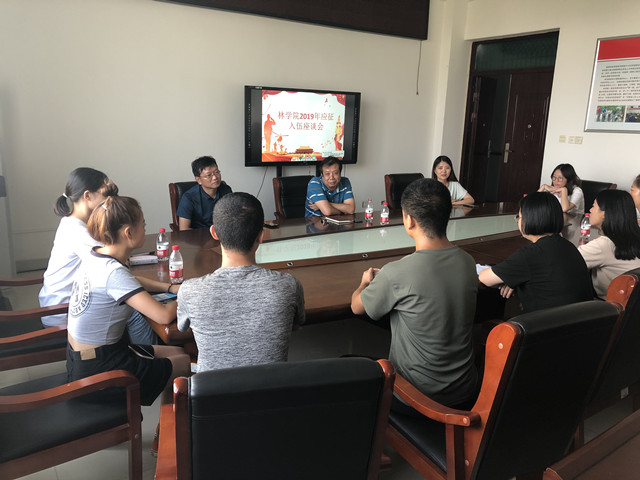 9月7日下午,林学院在科技楼1C501召开2019年应征入伍座谈会,会议由林学院党总支书记赵师成主持,林学院党总支组织员肖亮、辅导员徐俊杰、2019年应征入伍学生、部分退役老兵及学生党员参加此次座谈会。