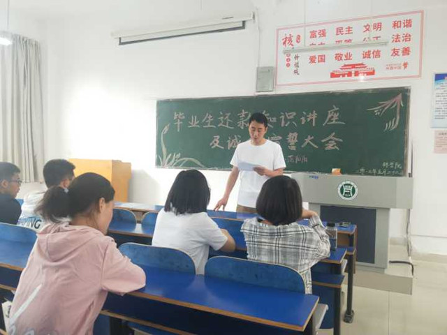 5月29日中午,林学院在一教204教室召开国家助学贷款毕业生还款知识讲座及诚信宣誓大会。我院学工组资助贷款专员范阳阳老师及2019届申请国家助学贷款的同学参加会议。
