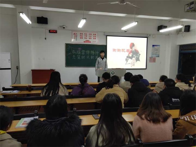 为了更好的学习雷锋同志精神,践行社会主义核心价值观,以实际行动缅怀雷锋同志,林学院于2019年3月8日晚在二教117举办了“学雷锋精神暨爱国心,奉献情、奋斗情,奋斗行”主题活动,林学院师生参加了此次活动。