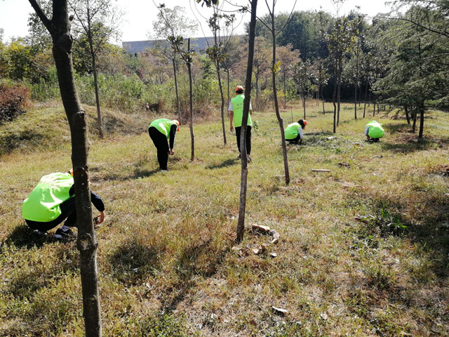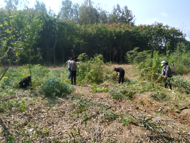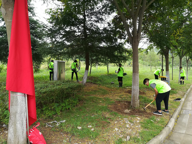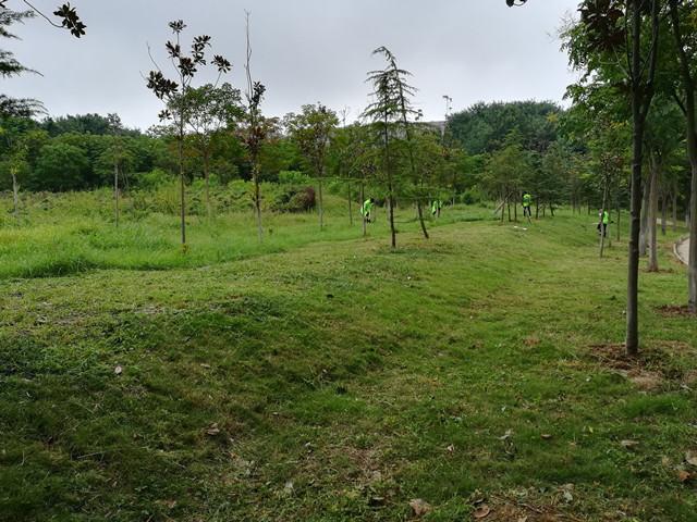 9月1-2日社团组织10名同学使用锂电池割草机和铁锹等工具对香樟园杂草和杂灌进行清理;9月8-9日社团组织10名同学使用锂电池割草机和锄头等工具对行政楼前苗圃地杂草和杂灌进行清理。树盘除草和控制草坪高度,既能增加绿地美化效果,又能有效防控病虫害的发生。