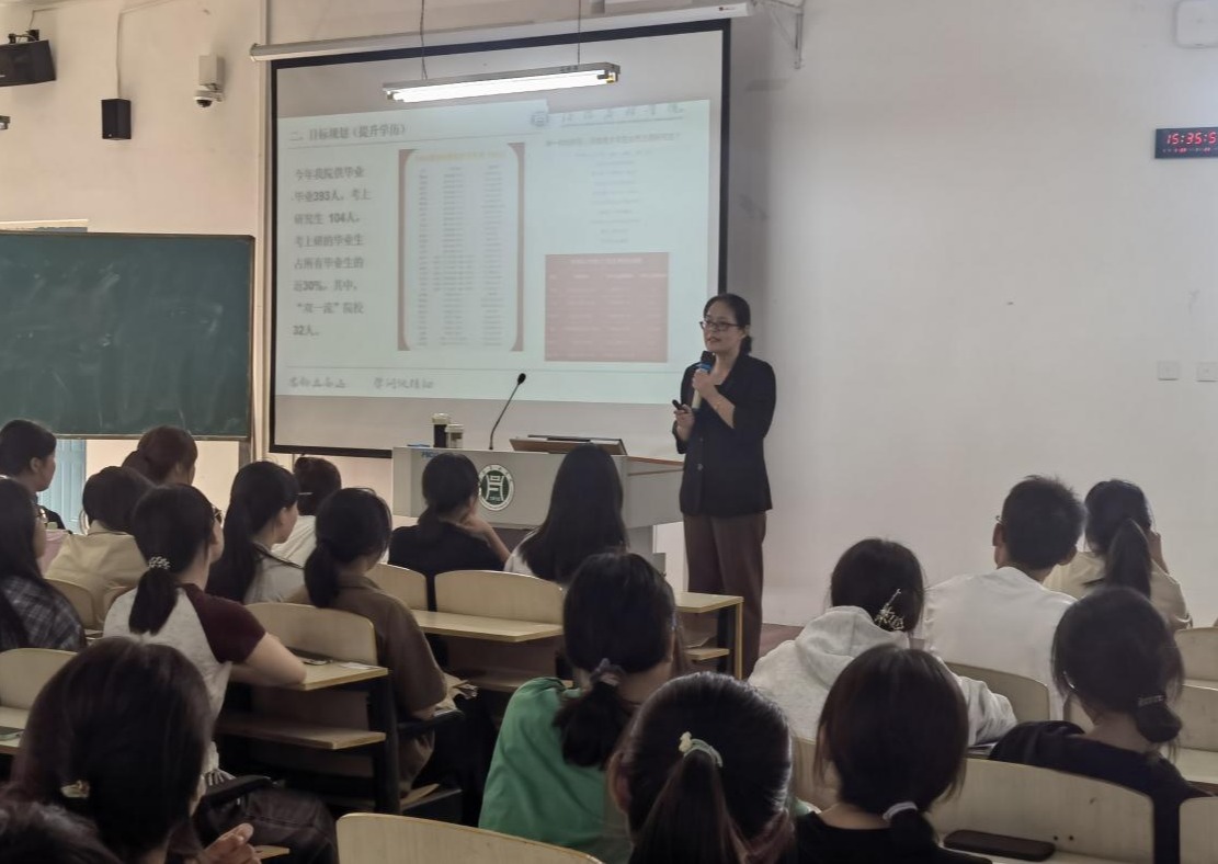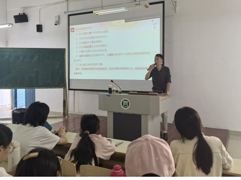 院党总支副书记范阳阳对新生进行了学生日常行为规范及考核、违纪处理办法、寝室管理、防诈防骗、行为习惯教育,引导学生做好人生规划,遵守法律法规、校纪校规,廉洁守信,保护好生命和财产安全,做新时代的好青年。