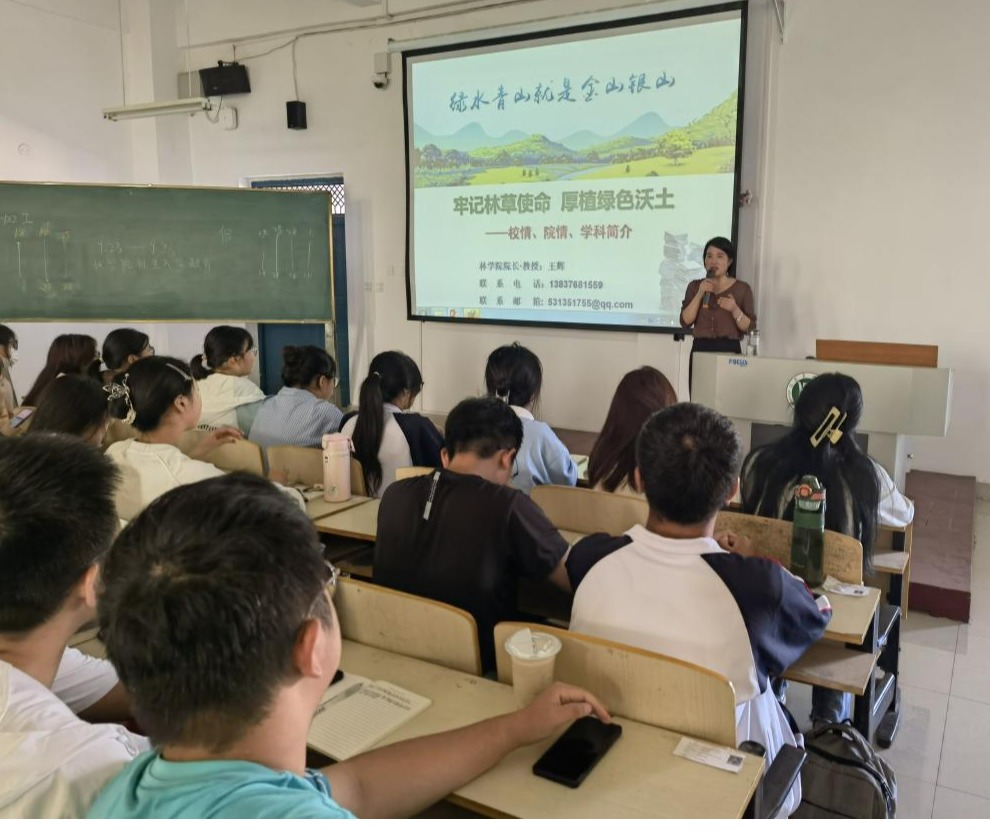 院长王辉以《牢记林草使命 厚植绿色沃土》为题,从学院基本情况、职业教育、专业设置、就业前景等方面做了生动讲解,展示了学院优秀毕业生的风采,为新生了解学院、热爱专业打下了坚实的基础。