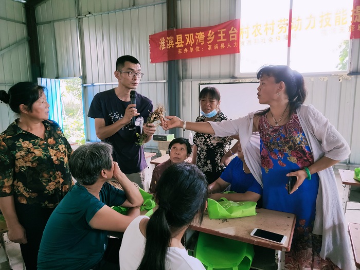 8月12-13日,植物保护教研室教师、校水稻有害生物绿色防控科技服务团成员王国君副教授,应邀到淮滨县邓湾乡王台村开展农村劳动力技能提升培训。
