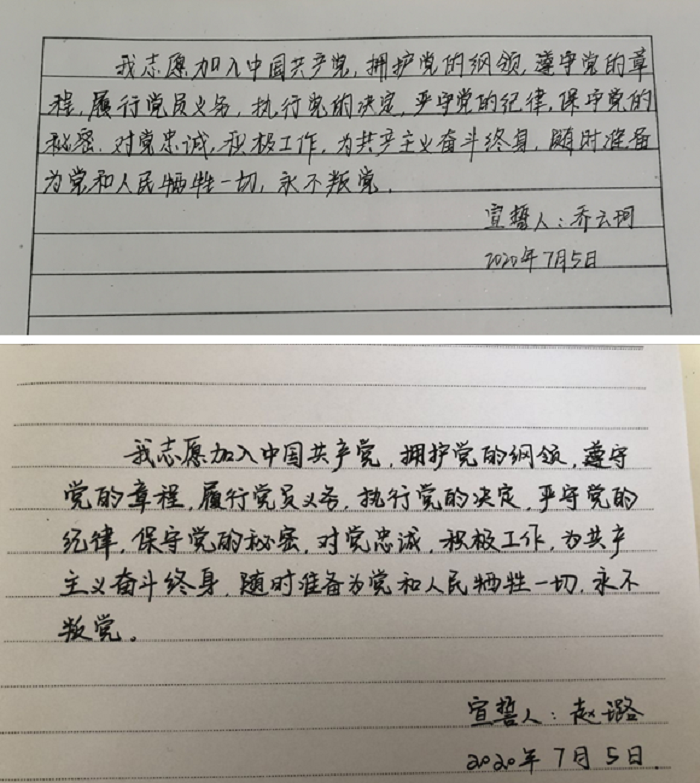 主题党日活动第一项内容是支部党员手写入党誓词。随后,武浩以“重温党史回忆初心、砥砺前行坚定信念”为题为支部成员讲党课。武浩表示,作为新时代的青年大学生党员,不仅要有“路漫漫其修远兮,吾将上下而求索”的求真探索精神;还要有“长风破浪会有时,直挂云帆济沧海”的坚定决心,更应当挺起共产党人的精神脊梁,学习马克思主义理论,以史为鉴,以史为师,将党的思想理论作为行动指南,在新的时代浪潮中,始终保持海纳百川的胸襟、审慎明辨的视野和踏实笃定的精神,为实现“两个一百年”奋斗目标和中华民族伟大复兴的中国梦而不懈奋斗。党课结束后,支部全体党员集中观看了电影《建党伟业》。最后,武浩对支部成员提出四点要求:第一,找准定位,加强党史的学习和研究,坚定“四个自信”;第二,坚定共产主义理想信念,热爱党的事业,争做优秀党员;第三,强化责任担当,在党需要之时挺身而出;第四,增强爱党护党定力,提高自身干事能力,自觉维护党的利益。
