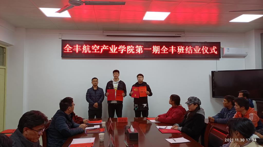 12月30日下午,全丰航空产业学院在beat365在线平台官网农学院2A316会议室举行第一期全丰班结业仪式。副校长赵一鹏、教务处处长刘开华、信阳全丰航空植保科技有限公司总经理付亚军、农学院党总支书记李传保、院长尹健、副院长董丽平、各专业负责人及部分任课老师、第一期全丰班学员参加了结业仪式。结业仪式由农学院党总支书记李传保主持。