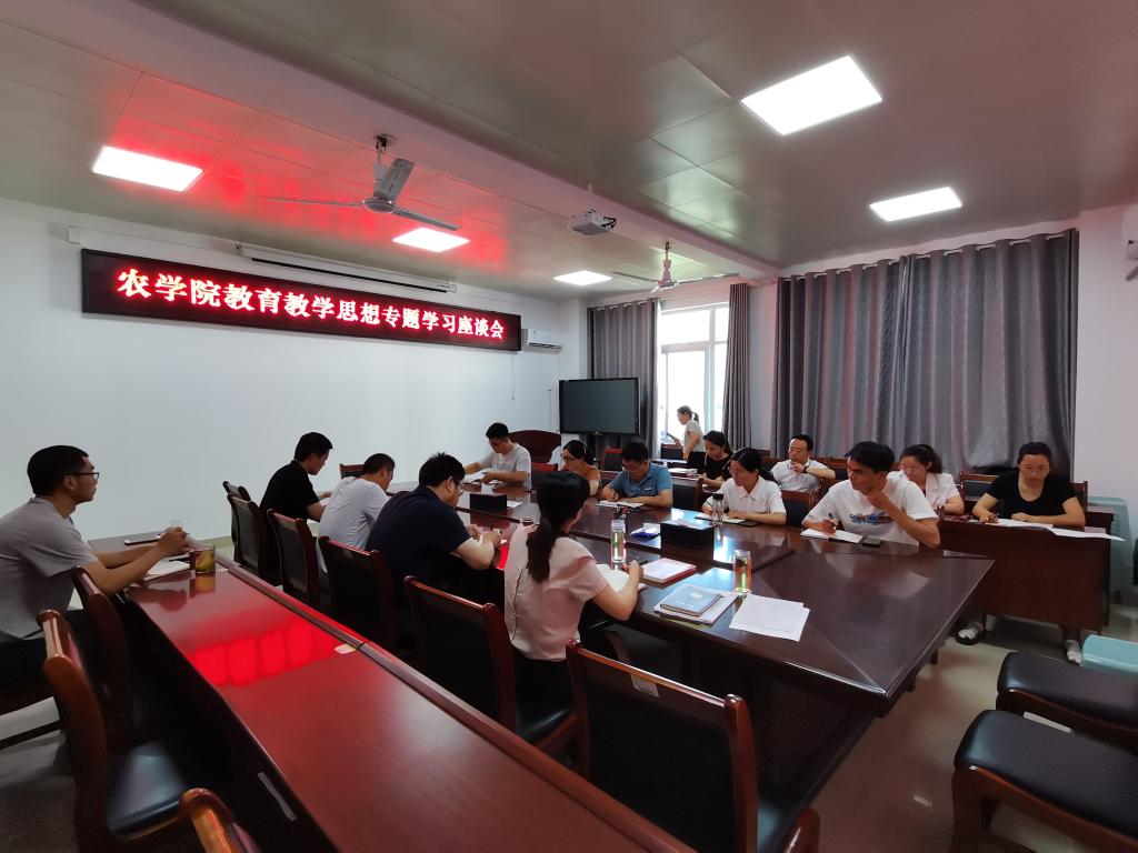 6月15日上午,农学院在2A316开展了教育教学思想专题学习座谈会,会议由农学院副院长董丽平主持,院领导班子全体成员、教研室主任及部分教师代表参加了本次会议。