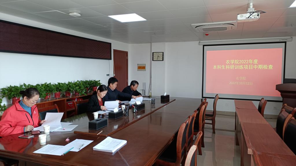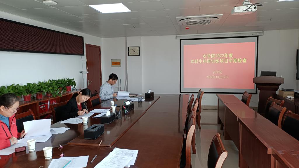 根据《农学院本科生科研训练项目管理办法(试行)》,2022年10月12日下午,我院在学术交流中心626对2022年度本科生科研训练项目开展中期检查。农学院本科生科研训练工作小组:副院长陈利军、副院长董丽平、教研室主任张艳玲和王国君、教师鲁伟林、耿书宝和徐运飞参加此次中期检查。