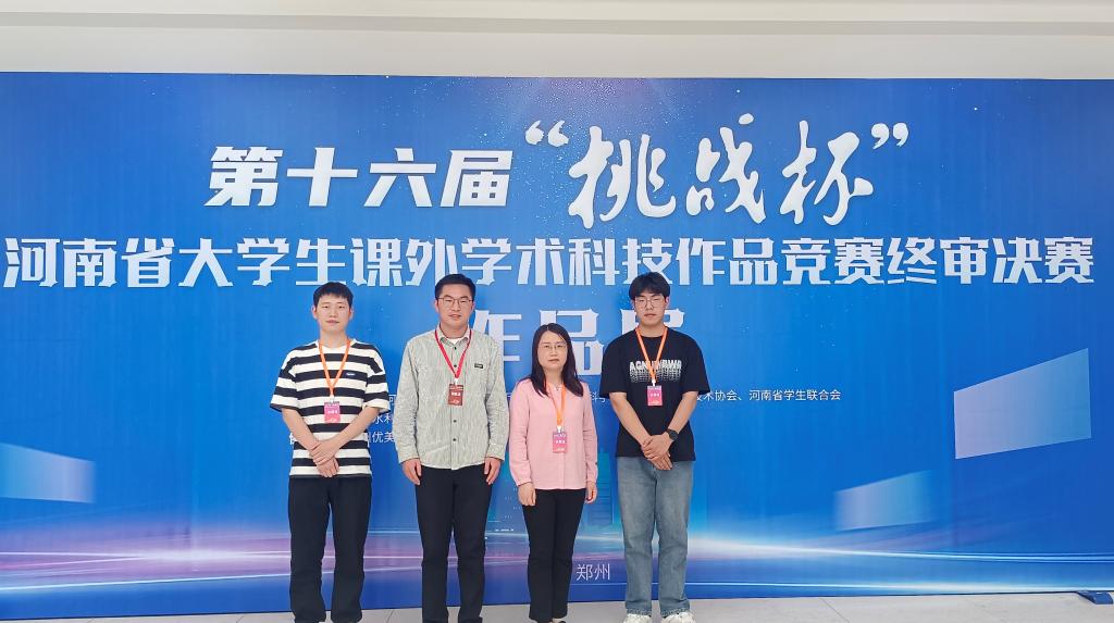 5月10日至5月14日,由共青团河南省委、河南省教育厅、河南省社会科学院、河南省科学技术协会、河南省学生联合会主办,华北水利水电大学承办的第十六届“挑战杯”河南省大学生课外学术科技作品竞赛终审决赛在华北水利水电大学龙子湖校区举行。我院乔利老师指导的“四种药剂对小贯小绿叶蝉的取食刺吸电位分析”作品通过校内选拔、专家初审,作为学校唯一作品入围决赛。乔利老师、陈磊老师带领学生岳双奇、路航参加作品海报展示、评审答辩环节。