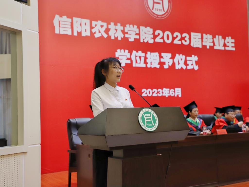 信农初夏,桃李芬芳。2023年6月5日下午,农学院在图书馆六楼报告厅隆重举行2023届本科毕业生学位授予仪式,学院全体教师及2023届本科毕业生参加,仪式由学院学位评定分委员会委员、中草药栽培教研室主任张艳玲副教授主持。