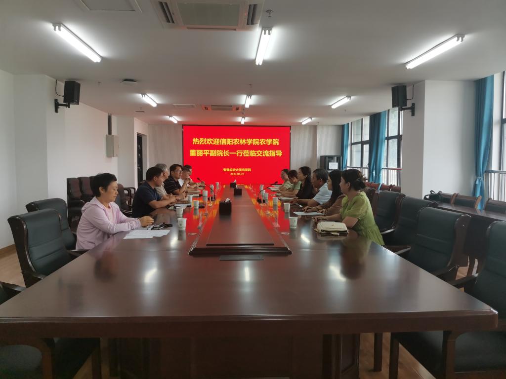 2023年8月25日,我院副院长董丽平、种子科学与工程专业带头人鲁伟林研究员与种子科学与工程教研室主任李淑梅带领种子与工程专业教师杨艳琳、刘娟、陈文静、曹永润等一行7人赴安徽农业大学农学院交流学习。