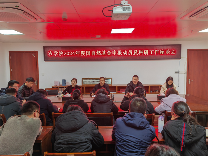 2024年1月18日,我院在学术交流中心626召开2024年度国自然基金申报动员及科研工作座谈会。院党总支书记李传保、院长陈利军、院党总支副书记王付娟、副院长董丽平、科研秘书耿书宝和全体博士参加。会议由副院长董丽平主持。