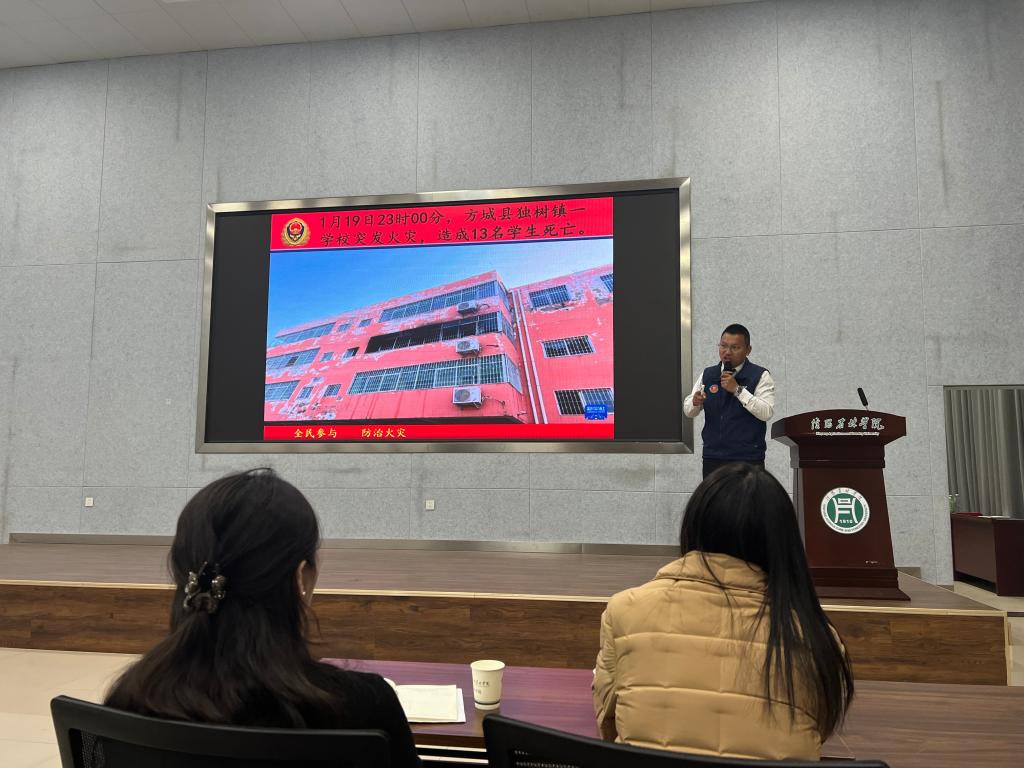 为了不断提高农学院师生消防安全意识,进一步掌握消防安全知识和逃生自救能力。3月12日下午,我院在学术交流中心一楼报告厅举行春季消防安全知识培训会,此次培训特邀请河南拓安消防科普专家詹杰主讲,培训由副院长耿书宝主持,学院主要领导、部分师生代表参加本次活动。