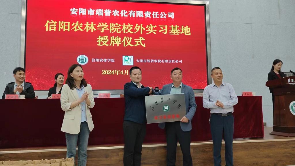 活动中,校企双方代表签署了校企合作协议,双方领导共同为“安阳市锐普农化有限责任公司校企合作实习单位”和“beat365在线平台官网实习实训基地”揭牌。郭齐和杨素菊代表公司向农学院捐赠了运动员服装、水饮、运动员保险等物资。(撰稿/韦前飞 摄影/李柏臻)